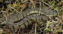 Like other Nerodia species, the diamondback water snake is ovoviviparous. Adults breed in the spring, and gravid females give birth in the late summer or early fall. Neonates are around 8–10 in (20–25 cm) in length. Though its range overlaps with several other species of water snakes, interbreeding is not known.