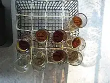 Nessler cylinders (also named color comparison cylinders or color comparing cylinders) are laboratory tubes with a fixed volume, made of glass with optically plane bottom. On the walls, there are marks of the nominal stroke volume (usually 100 ml) and possibly one halfway mark (usually 50 ml).