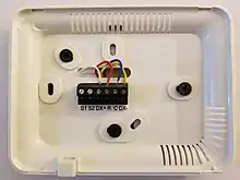 Nest consists of two primary pieces of hardware. The display contains the main printed circuit board (PCB) and rotating ring (except for the 2020 Nest Thermostat, which has a touch-sensitive strip on the right side of the thermostat body). The base houses the connection terminals, bubble level, and holes for wall anchors. Neither can function independently; if separated, the display becomes inactive until reconnected to the base.[10]