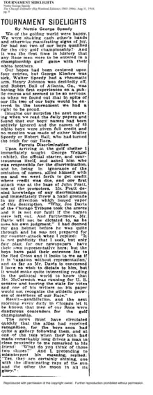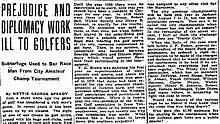 - "Prejudice and Diplomacy work ill to golfers". The Chicago Defender, N. S.,1922