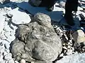 Neugrund breccia formed during the cementation of meteor fragments. Glacial action distributed erratics of breccia throughout an area of over 10,000 km2 surrounding the impact site.[2] Boulders of Neugrund breccia can be found in north-western Estonia and are especially concentrated around the island of Osmussaar.