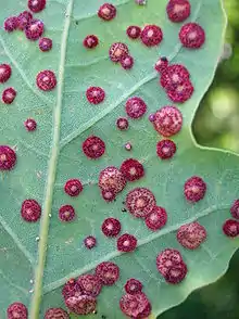 The spangle galls are sometimes misidentified as scale insects.[7]