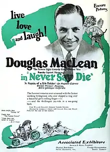 Never Say Die is a 1924 American silent comedy film directed by George Crone and starring Douglas MacLean, Lillian Rich, and Helen Ferguson.[1][2]