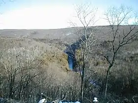 The Neversink Gorge is located in the town of Forestburgh, New York, USA, and is one of the more outstanding features of the Neversink River.[1] A portion of the western side of the gorge, above Denton Falls, through High Falls, to the entrance of Eden Brook, is a private nature sanctuary called The Turner Brook Reserve;[2] the entire eastern side and the remaining western property is a New York State Department of Environmental Conservation (DEC) controlled Unique Area, often called the Neversink Gorge Unique Area.[3]