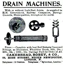 The business was founded in 1882 by George H. Cakebread and Arthur E. Robey as Cakebread Robey & Company[2] and became an important supplier of engraved and stained glass to public houses and hotels in England, such as The Queen's Hotel (now The Queens pub)[3] in Crouch End, The Salisbury in Harringay, and St Andrew's church, Chase Side, in Southgate. They were based at Stoke Newington and from around 1914 at Caroba Works, Wood Green, north London. The supply of sanitary fittings was also an important part of their business, and now their principal activity.