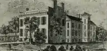 In 1868, the developmental center had acquired its own campus, and the mansion was sold that April to the Hannah Neil Mission and Home of the Friendless for $12,000. Hannah Neil was the wife of William Neil, who owned the Neil House hotel downtown and ran a large farm on the site of the Ohio State University. Hannah Neil's orphanage was founded in April 1858 as the Industrial School Association, as it served to teach poor children the skills needed to build a better life. The organization was renamed in honor of Neil in April 1868, on its tenth anniversary, and about one month after she died. The Neville Mansion acted as the organization's orphanage for temporarily neglected or dependent children for over a century, and replaced a homeless shelter established in 1865.[2] Before occupancy, the house was renovated, with parts using bricks salvaged from the fire that destroyed the first Ohio Statehouse.[3]