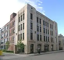 The American Beauty Iron Building was designed by Albert Kahn.[15] It was built in 1908 for the American Electrical Heater Company, a maker of electric irons and toasters.[16] A portion of the building was demolished in 1932 when Woodward was widened, and an addition was constructed in 1934.[16]