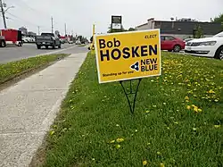 The New Blue Party is a right-wing, social conservative party that has been described as being to the right of the Progressive Conservative Party of Ontario from which it split.[3][2] The party has publicly opposed all measures taken against COVID-19; at least one of the party's candidates for the 2022 Ontario general election took part in the Canada convoy protest.[18][19]