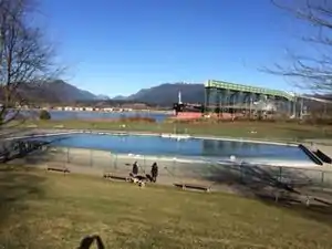 Located in the Hastings-Sunrise district of Vancouver, British Columbia, Canada, New Brighton Park is a waterfront park facing the North Shore Mountains with beach access to the Burrard Inlet. The park is surrounded by industrial plants, the Hastings Racecourse, as well as access to the Port of Vancouver. During the summer, the park becomes a popular location for recreational activity. There is a soccer pitch, tennis courts, barbecue/picnic sites, two playgrounds, beaches, and an outdoor pool. For local residents, New Brighton Park provides a nearby location with similar facilities found at other popular recreational parks such as Kitsilano Beach, which is located on the west side of Vancouver. New Brighton Park is also in the process of being connected to Hastings Park via Creekway Park, which will allow people to walk and cycle between the two locations.