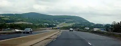 At Sussex the highway turned east again and passed by Petitcodiac and then by Salisbury. East of Salisbury, Route 2 followed local roads over a series of low hills north of Moncton, cresting at Lutes Mountain, before descending and following a controlled access section bypassing the city and Dieppe, skirting the edge of the Memramcook River valley and on to Sackville, then Aulac, and finally the N.B.-N.S. inter-provincial boundary.