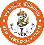 New Democracy Party (Thai: พรรคประชาธิปไตยใหม่, Phak Prachathipataimai) is a political party in Thailand that founded on 21 April 2011. Suratin Pichan is Leader and Nipon Chuenta is Deputy Leader and Jumrus Kraiyasit is Secretary-General.[1][2][3]