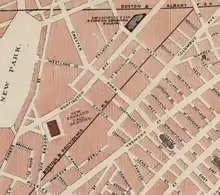 In 1885 the exhibition building was sold to the Metropolitan Horse Railroad, for use as "a storage and repair shop." The building burnt to the ground in June 1886, in a massive fire that killed 8 people.[13]