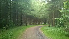![]() A path through the forest of Brendstrup Skov (2013). Here larch have been planted as nursing trees. Brendstrup Skov is part of afforestation experiments and research. | |