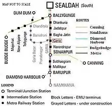 New Garia is home to two major bus termini (popularly named as C-5 and 206 after the routes they originally used to serve) and is connected by all varieties of bus services to all parts of the city.[4] [5][6]