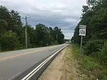 New Hampshire Route 126 (abbreviated NH 126) is a 15.265-mile-long (24.567 km) north–south state highway in eastern New Hampshire. It runs between the towns of Barrington and Barnstead.