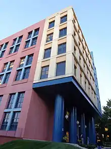 A six-story Arts and Sciences building named Karnoutsos Hall was designed by architect Michael Graves.[21] It is known by students as the Crayola building, because of the colors which make up the building's exterior, and as the K building. It is located in the center of the campus. The 77,000-square-foot (7,200 m2) building, houses 14 classrooms, 10 computer labs, faculty offices for nine departments, and the Office of the Dean of Arts and Sciences.