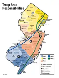 - Troop A: Southern New Jersey (including the Atlantic City Expressway)