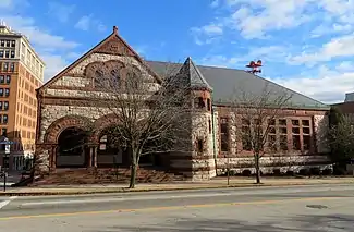 The Public Library of New London is a historic library located at 63 Huntington Street at the corner of State Street, New London, Connecticut. The library was given to the city by Henry Philomen Haven.[2] It was constructed in 1889-92[2] and was designed by Shepley, Rutan and Coolidge in the Richardsonian Romanesque style; George Warren Cole was the project supervisor.[3][4]