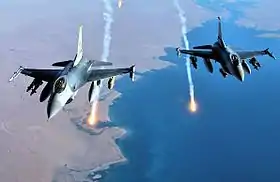 ![]() F-16 Fighting Falcons of the 188th Expeditionary Fighter Squadron over Iraq, 2009 | |