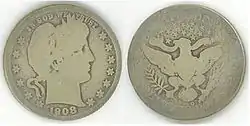 | Indian head | 1909 | (no image available) | These coins were incused when minted; that is, the die pattern was pressed into the planchet. | |