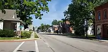 New Palestine was laid out October 1, 1838, by Jonathan Evans.[4] It first consisted of fifteen blocks and thirty six lots.[5] A petition for the incorporation of New Palestine as a town was dated May 22, 1871, and presented to the board of county commissioners at the June session of 1871. At the time of the petition, New Palestine had a population of around 669 people. The vote for incorporation was held on June 24, 1871. Many years after incorporation, the town had difficulty with its name. The post office was known as Sugar Creek, the railroad and express stations as Palestine and the name of the town itself was New Palestine. Through the efforts of E.F. Faut and Congressman Bynum, the name of the post office was changed from Sugar Creek to New Palestine on January 16, 1889, and the name of the railroad station and express office were also changed to New Palestine.