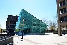 At the center of campus is the Samuel Dorsky Museum of Art, which opened in 2001. With more than 9,000 square feet of exhibition space in six galleries, the Dorsky is one of the largest art museums in the SUNY system.[25] The East Wing includes the Morgan Anderson Gallery, Howard Greenberg Family Gallery, Sara Bedrick Gallery, and the Corridor Gallery, and the West Wing includes the Alice and Horace Chandler Gallery and the North Gallery. The Dorsky's permanent collection comprises more than 5,000 works of American Art (with emphasis on the Hudson Valley and Catskill Regions), 19th, 20th and 21st century photography, metals, and a "world collection" of art and artifacts dating back to ancient times and representing diverse cultures. Through its collections, exhibitions, and public programs, the Dorsky supports and enriches the academic programs at the college, presents a broad range of world art for study and enjoyment, and serves as a center for Hudson Valley arts and culture.[26] The Dorsky's facilities include research and seminar rooms for visitors, students and professors at SUNY New Paltz.
