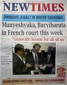 The New Times is a national English language newspaper in Rwanda. It was established in 1995 shortly after the end of the 1994 genocide. The paper states that it is privately owned, with two shareholders. They also used to have a Kinyarwanda-language weekly called Izuba Rirashe.[1]