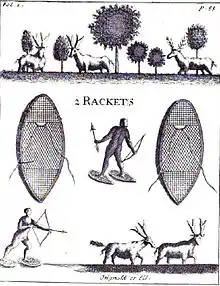 The waterways of Canada are essential for this trade to function because the native peoples' main mode of transportation used canoes, which could carry their furs for trade and allowed for them to navigate the St. Lawrence River. Lahontan notes that the natives are incredibly agile at navigating the waters. He spends a winter hunting with the Algonquin “in order to develop a more perfect knowledge of their language” while the city of Montreal is fortified to be protected against attacks.[5] Lahontan writes that the way the Indians fought was comical, with their “bows and arrows and stark nakedness.” Montreal was the city of merchants, some traveling only once a year there to sell their goods such as wine. The governors spent their winters there as well, hence the need for fortifications. During the winter Lahontan is introduced to the native way of hunting elk, the use of “rackets” (or snow shoes) which he finds to be useful. He observes that hunting is a huge part of native culture for survival, unlike in France where hunting is a sport for the wealthy.