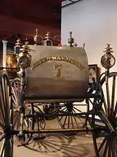 The New York City Fire Museum tells the story of the early days of firefighting in New York City.[5] The collection is home to firefighting artifacts and equipment dating back to the 1650s, such as carriages, engines, fire marks, buckets, trumpets, helmets, lanterns, rattles, and uniforms. Permanent exhibitions include: Firefighting on Parade, Romance of Firefighting, Fire Apparatus, and Tools and Uniforms. The museum also has an extensive collection of fire insurance marks.[5]
