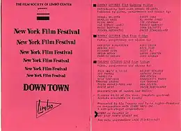 Known for its independent and "positively avante-garde" programming,[2] the festival came to prominence in the East Village art scene. The New York Film Festival Downtown ran for five years, ending in 1988.