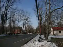 Just after the overpass comes the David Sutherland House, a stone structure dating back to 1770.[3] His descendant also has a house along CR 9, Daniel Sutherland House, which is located at the Chadeayne Circle. The highway there continues along Main Street, an urbanized, 3-lane highway until its terminus at NY 218 in Cornwall-on-Hudson.[1]