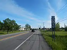 On November 1, 2005, the Niagara County Legislature voted on a measure to allow the county to ask the New York State Department of Transportation (NYSDOT) to remove the NY 93 designation from Upper Mountain Road, a county-maintained highway, and reassign it to Junction Road (NY 270) and Saunders Settlement Road (NY 31).[25][26] The impetus for the change came from a resident of Upper Mountain Road, who demanded that trucks should be removed from the roadway.[27] This part of the agenda was passed.[26] NYSDOT obliged to the request in 2006,[27] rerouting NY 93 as proposed and truncating NY 270 southward to NY 31.[28]