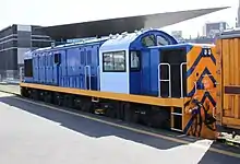 The last DJ locomotive in service was DJ3096 (DJ 1209), retained by New Zealand Rail as part of its Heritage Fleet in the 1990s.[26] The locomotive hauled a few special excursions for the Railway Enthusiasts Society in the South Island.[26] In 1995, the locomotive was transferred to Hutt Workshops in the North Island.[27] Following a repaint at Hutt Workshops, DJ3096 was transferred to Kawerau to work as a heavy shunter.[28] In 2000, the locomotive was allocated to Whangarei, for use in Northland, including working the Dargaville Branch,[29] and the Portland-Port Whangarei wood chips circuit.[30] In 2008 the locomotive was sold to the Dunedin Railways by the then national rail operator Toll Rail after forty years of service.[31]