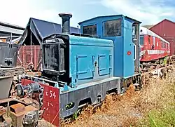 The original batch of six 0-4-0 TRs, 13-18, supplied in 1936 by the Drewry Car Co., was supplemented by TR 20-22 and 30-36 in 1939-40. These were powered by Parsons petrol engines. In 1939-40 seven 0-6-0 TRs (the only ones of this type), 23-29, were supplied and were fitted with Leyland 10-litre (610 cu in) petrol engines Wairarapa railcars. Finally, in 1950 five 0-4-0 TRs, 60-64, with diesel engines were introduced. The locomotives were built at various United Kingdom works including Vulcan Foundry and Robert Stephenson and Hawthorns. Two Drewry TRs are still in service today. This locomotive, TR 56, was KiwiRail's oldest locomotive (being introduced in 1936) and was used at their Hutt Workshops for light shunting duties,[2] until replaced by a battery shunt and transferred to Silver Stream Railway in 2022.[9] TR23 was restored by the Gisborne City Vintage Railway in February 2013 and is still in use by them.[10] TR18 is restored and active at Pleasant Point Museum and Railway.