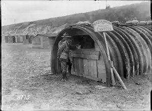 The New Zealand Tunnelling Company (also New Zealand Engineers Tunnelling Company) was a tunnel warfare unit of the Royal New Zealand Engineers during World War I which specialised in sapping and mining. The tunnelling companies were occupied in offensive and defensive mining involving the placing and maintaining of mines under enemy lines, as well as other underground work such as the construction of deep dugouts for troop accommodation, the digging of subways, saps (a narrow trench dug to approach enemy trenches), cable trenches and underground chambers for signals and medical services.[1] The unit is particularly known for its role at Carrière Wellington and during the Battle of Arras.