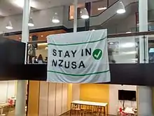 NZUSA campaigned against the introduction of voluntary student membership (VSM), arguing that students did support compulsory membership of students' associations. NZUSA proposed a policy compromise, suggesting a "KiwiSaver style" opt-out arrangement where students would be members unless they explicitly said they did not want to be.[1] Although NZUSA had campaigned against VSM for fifteen years, in 2012 all students' associations were required to be voluntary.[2]