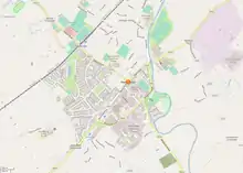 Newbridge, officially known by its Irish name Droichead Nua (pronounced [ˈd̪ˠɾˠɛçəd̪ˠ ˈn̪ˠuə]), is a town in County Kildare, Ireland. While the nearby Great Connell Priory was founded in the 13th century, the town itself formed from the 18th century onwards,[2] and grew rapidly alongside a military barracks which opened in the early 19th century.[3][4] Taking on the name Newbridge (An Droichead Nua) in the 20th century, the town expanded to support the local catchment,[5] and also as a commuter town for Dublin.[6][7] Doubling in population during the 20 years between 1991 and 2011,[8] its population of 22,742 in 2016[1] makes it the largest town in Kildare and the fifteenth-largest in Ireland.