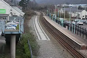 The station and line reopened on 6 February 2008 when services between Cardiff Central and Ebbw Vale Parkway railway station commenced.[2] In February 2009 Caerphilly County Borough Council started construction on a footbridge to link the station with the Comprehensive School, Leisure Centre and the town centre.