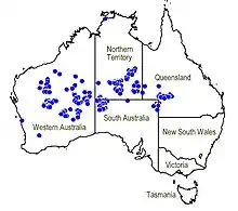 In Western Australia it is found in the IBRA regions of Pilbara, Little Sandy Desert, Gascoyne, Central Ranges, Gibson Desert, Great Sandy Desert, Great Victoria Desert and Murchison.[5]