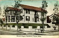 The Newell Rogers House, also known as the R. C. Gaddis House, is a historic two-story house in Laurel, Mississippi. It was designed in an eclectic architectural style with Neoclassical and Mediterranean features by DeBuys, Churchill & Labouisse, and built in 1909 for George S. Gardiner for his daughter Juliet Gardiner and her husband Newell Rogers.[2] It was later purchased by R. C. Gaddis, followed by Thomas Saucier.[2] According to architectural historian Mary Warren Miller, it is "one of Laurel's most significant early twentieth-century houses."[2] It has been listed on the National Register of Historic Places since April 20, 1987.[1]