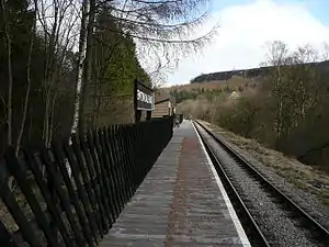 The halt was built by the North Yorkshire Moors Railway using materials from Warrenby Halt, near Redcar.[4] The halt was a new construction that was a joint enterprise between the NYMR, the Forestry Commission and the North Yorks Moors National Park Authority.[3] The station was opened in 1981 near to the former Newtondale signal box that had last been used in 1930 and was demolished by the NYMR in 1995 due to it being unsafe.[5][6]