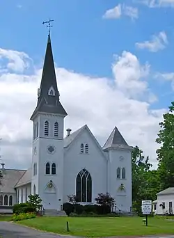 Newtonville is named after John M. Newton, an early landowner,[1] it was originally called Newton Corners.[2] Mr. Newton was in the business of manufacturing bricks, ceramics, and stove linings. He built the First Baptist Church in 1852, today it is the Newtonville Post Office and is on the National Register of Historic Places.[2][3] The first post office at Newtonville was established in 1850 and located in the store owned by John H. Kemp.[1] On October 27, 1887 the Rev. Dr. William Arthur, father of President Chester A. Arthur, died in Newtonville.[4] During the early 1900s Newtonville was a popular place in guide books catering to touring the countryside in early automobiles, such as- Scarborough's Official Tour Book (1918), Automotive Industries (1905), Albany Guide Book (1917), Automotive Blue Book (1921), Red Book: Interstate Automobile Guide, and the A.L.A. Green Book: Official Route Book (1920). In 1906 David Jeram began the Loudonville Autobus line with an 18 passenger Knox bus traveling between Latham's Corners and Albany with a stop at Newtonville.[5] In 1987 the Buhrmaster Barn, built in the 1800s along the Mohawk River was moved to Newtonville at the site of the historical museum, the Pruyn House. In 1997 the Verdoy Schoolhouse was also moved to that location.[6]