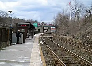 The present station has one active side platform next to the southern track (Turnpike side); trains on the other track can be boarded via a wooden crossing, as is occasionally done when the southern track is closed for repairs. A second platform, now abandoned, sits aside the northern track. Both platforms are low level.