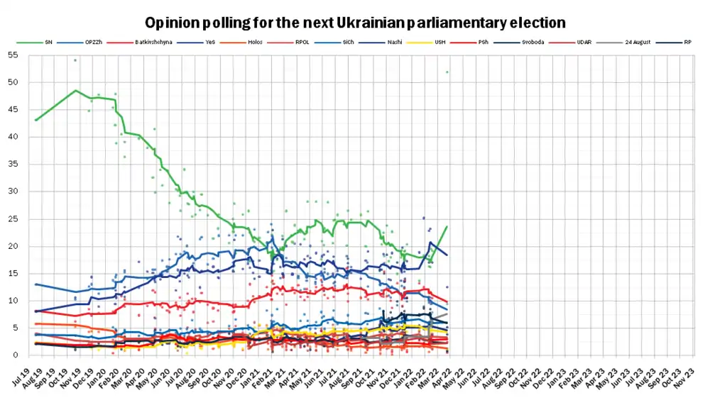 On 20 March 2022, several political parties were suspended by the National Security and Defense Council of Ukraine for the period of martial law:[15][16]
