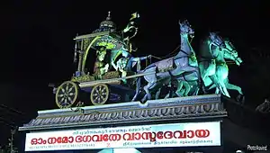 Neyyattinkara Sree Krishna Swamy Temple is a Lord Krishna temple situated at Neyyattinkara, 20 km south of Thiruvananthapuram city, in Kerala. One of the important temples of Lord Krishna, the temple is also of great historic importance as well. The temple enshrines Unnikannan in the form of (Navaneetha Krishna) as the presiding deity. Thrikkayyilvenna or Thrikkayyil Venna (butter) is a unique offering to Neyyattinkara Unnikannan – the deity of the temple.[1] World famous musicians, Sri. Neyyattinkara Mohanachandran and Neyyaattinkara Vasudevan used to perform concerts regularly in temple festival.[2]