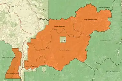 In 2012, Nez Perce National Forest and Clearwater National Forest were administratively combined as Nez Perce-Clearwater National Forests, with headquarters in Kamiah, Idaho.[4] There are local ranger district offices in Elk City, Grangeville, Kooskia, and White Bird.[5]
