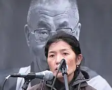 ![]() Ngawang Sangdrol at a free Tibet rally in New York City | |