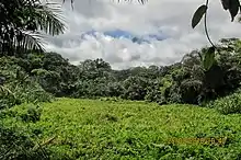 The Ngoyla Faunal Reserve was officially created by the MINFOF (Ministry of Forestry and Wildlife) in 2014 with the support of WWF.[3][2] It is found in the south-central part of the Ngoyla-Mintom massif. The climate of the reserve is tropical with two wet and two dry seasons. The annual precipitation is 1,500 mm in the northern, and 2,000 mm in the southern area, the average annual temperature is 24-25 °C due to the elevation (500-600 meters a.s.l.). Characteristic vegetation types are humid evergreen rainforests (82%), swamp forests (15%), natural forest clearances (2%), and secondary forest-farmbush mosaics (1%). Its biodiversity is notable; 230 fish, 280 bird, and 37 large and medium-sized mammal species have been recorded. Notable mammal species are the African forest elephant (Loxodonta cyclotis), western lowland gorilla (Gorilla gorilla gorilla), central chimpanzee (Pan troglodytes troglodytes), mandrill (Mandrillus sphinx), leopard (Panthera pardus), African forest buffalo (Syncerus caffer nanus), western bongo (Tragelaphus eurycerus), sitatunga (Tragelaphus spekii), and forest duikers.[2] Besides the high density and diversity of forest animals, the Ngolya Faunal Reserve is an important corridor to migrating species, such as forest elephants by connecting the Dja Faunal Reserve, the Nki National Park, and the Minkébé National Park of Gabon, due to its location within the TRIDOM complex.[1]