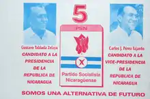 The Nicaraguan Socialist Party (Partido Socialista Nicaragüense) is a political party in Nicaragua. Founded in July 1944 by Dr. Mario Flores Ortiz. PSN operated as the official communist party in the country. At the time of its foundation, PSN supported the regime of Anastasio Somoza García. PSN considered that Somoza (nominally a liberal) was an anti-fascist ally.[1]