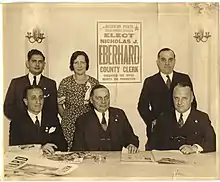 Eberhard attended the St. Angela Merici's Church. He was a member of the Knights of Columbus and the Elks. He married Agnes Clark.[14] Their children were Virginia, Nicholas Jr., and Catherine Anna.[1]